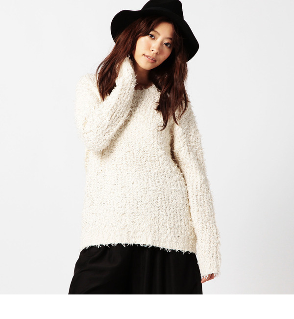 【送料無料】 クルーネックに無地デザインでシンプルながらも、起毛感のある素材で表情豊かに仕上げたニット。ややゆったりめのシルエットでラフに着こなせます。ワイドパンツなどボリュームのあるアイテムと合われば今シーズンらしいスタイリングが叶います。 ローズバッド/ROSEBUD トップス|ニット・セーター