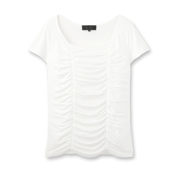 【送料無料】 フロントのギャザーでモードな表情をつけたUNTITLED定番カットソー。サラリとした春夏素材でおつくりしました。ギャザーをダブルデザインにすることで気になるお腹まわりをカバーしてくれる効果も。ジャケットインに使えばVゾーンを華やかに演出します。サイズ違いの商品もご用意しております。L:153-18966モデル情報:身長170cm B82 W58 H85 着用サイズ:02店舗へのお問い合わせ商品番号:153-18426主に夏に着用いただける商品です。日本製 アンタイトル/UNTITLED UNTITLED|トップス|Tシャツ・カットソー