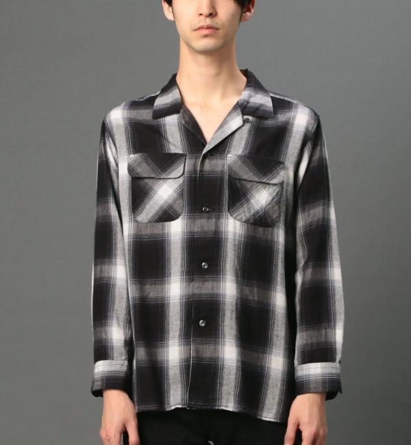 <monkey time> C/LYCL オンブレーチェック オープンカラー シャツ