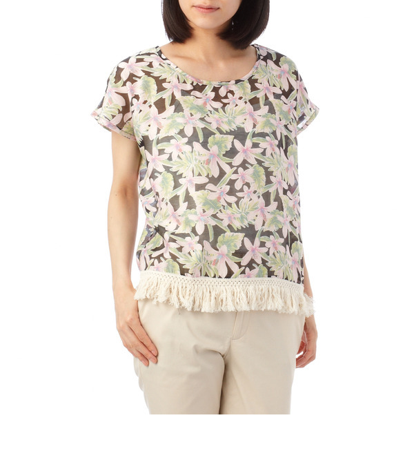 【グローブ/grove】 シアーフラワー裾フリンジブラウス [送料無料]