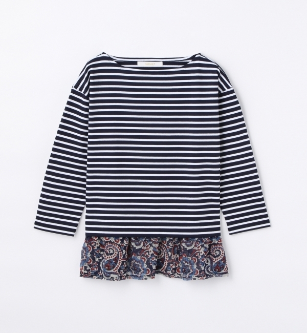 【送料無料】 裾部分に〈SOULEIADO〉のプリント素材を使用しフリルを施した、さりげない女性らしさが魅力のボーダープルオーバーです。ドロップショルダーのゆったりとしたシルエットでリラックス感のある仕上がりに。デニムなどとヘルシーに着こなすのがおすすめです。店舗にお問い合わせの際は、下記の品番をお申し付けください。品番:75036203001 トゥモローランド/TOMORROWLAND SOULEIADO|トップス|Tシャツ・カットソー,プルオーバー