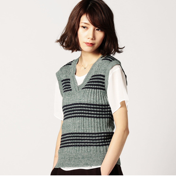 【ローズバッド/ROSEBUD】 LK-16147 ボーダー柄Vネックニットソー [送料無料]