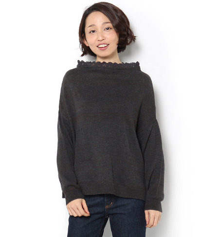 レース付ボトルネックプルオーバーニット