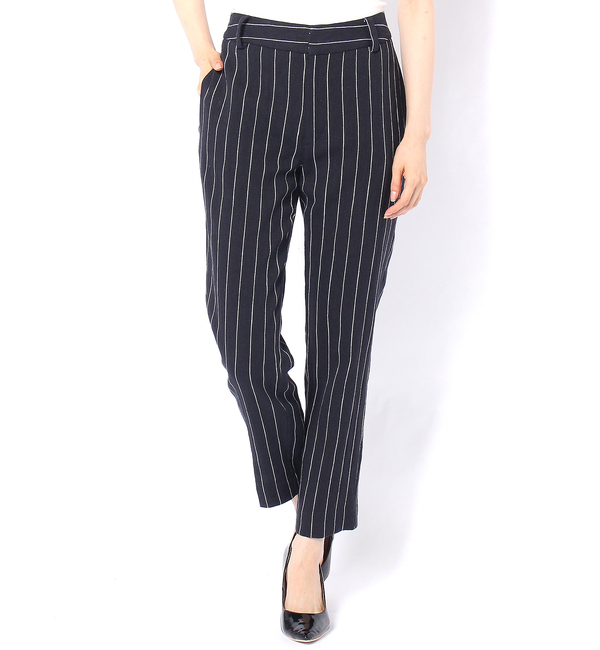 【送料無料】 ストライプ柄のシンプルなパンツ。トップスにとろみシャツを合わせてパンプスをはくと大人女子の出来上がりです。メンズライクなローヒールシューズやハットと合わせてマニッシュな着こなしにも◎ コーディネートをリッチテイストに仕上げてくれるおすすめのロングパンツです。 ラウンジドレス/Loungedress パンツ|チノ