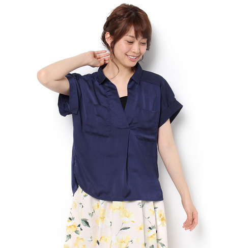 【3000円(税込)以上で送料無料】 しなやかな肌触りとほのかな光沢が美しいエステルシフォン素材を使用。今シーズン大人気のゆるてろシャツに仕上げました。顔まわりをすっきり見せてシャープさを演出してくれるスキッパーデザイン。大きめの胸ポケットとロールアップスリーブでトレンドのサファリテイストもプラスしています。 テチチ/Te chichi Te chichi|トップス|シャツ・ブラウス