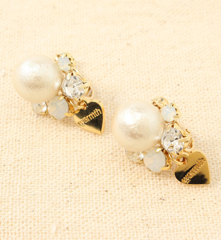 【送料無料】 コットンパールとビジューがごろごろ付いており大変ポイントになります。ビジューの色もクリアとホワイトを使用しているので派手になりすぎず、とても合わせやすいアイテムです☆普段使いはもちろんですがドレススタイルにもピッタリです。前から見てイヤリング金具が目立たないのもポイントです♪ ワームス/warmth アクセサリー ・ヘアアクセサリー|ピアス,イヤリング