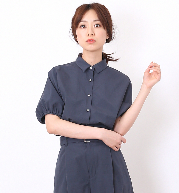 【送料無料】 かさっとしたドライタッチなナイロン混の素材を使ったシャツは、適度なボリューム感が出るので一枚で着てサマになります。メンズライクなミリタリー調のテイストと、女性らしいドルマンシルエットが絶妙にマッチ。同素材のパンツとセットアップ風に着たり、ギャザースカートやスカウチョなどトレンドボトムともコーディネートしやすく仕上がっています。(カーキ)model:H166・B82・W58・H82 着用サイズ:FREE(ネイビー)model:H165・B81・W59・H84 着用サイズ:FREE ルージュ・ヴィフ ラクレ/Rouge vif la cle トップス|シャツ・ブラウス