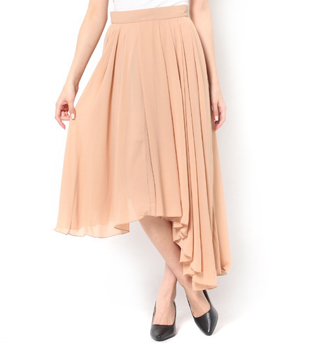 【送料無料】 アシンメトリックヘムの生み出すドレープが新鮮なタックフレアスカートです。見る角度によって表情を変える、変化に富んだラインに注目。ほのかに透けるジョーゼット地の繊細な素材感も魅力のひとつになっています。トップス合わせで、きれいめカジュアルにもドレッシーにもアレンジできるアイテムです。 エモダ/EMODA スカート|スカート