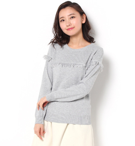 【テチチ/Te chichi】 編地切替フリンジ長袖プルオーバーニット [3000円(税込)以上で送料無料]