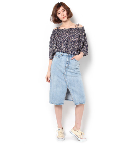 【送料無料】 トレンドアイテムとしてキープしておきたいオフショルダーのブラウスが登場。甘過ぎないカラーリングにこだわったフラワープリントは大人っぽさを演出できるうえ、カジュアルボトムスとも相性抜群です。肩にリボンストラップを備えているので、ずれ落ちる心配もありません。 アングリッド/Ungrid トップス|シャツ・ブラウス,オフショルダー,その他