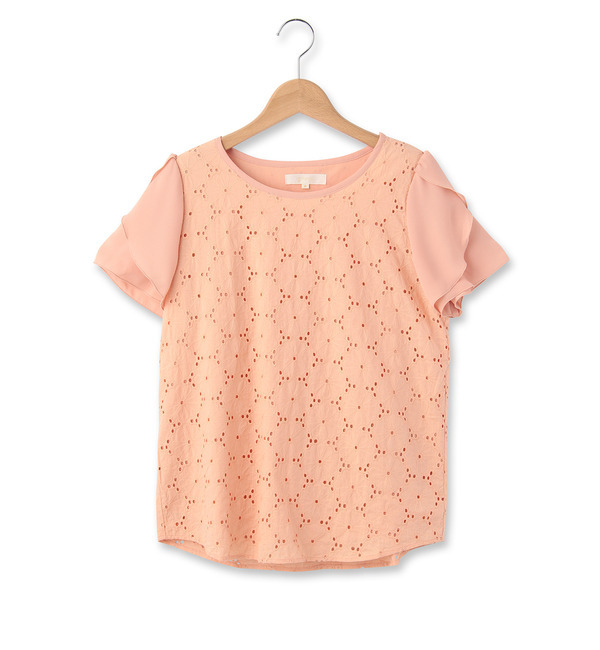 【3000円(税込)以上で送料無料】 フロントの刺繍レースがフェミニンな夏のスタイルを演出するトップス。袖はチューリップ袖でワンテクありなデザイン。モデル情報:身長168cm B79 W59 H84 着用サイズ:02(M)店舗へのお問い合わせ商品番号:768-18329主に夏に着用いただける商品です。カンボジア製 グローブ/grove grove|トップス|Tシャツ・カットソー