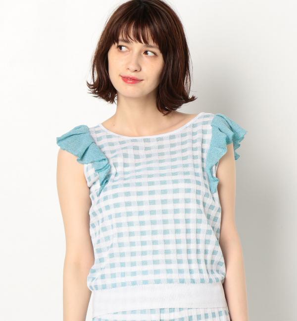 チェックフリルノースリーブプルオーバー/AEBFC CHK フリル NSL PO