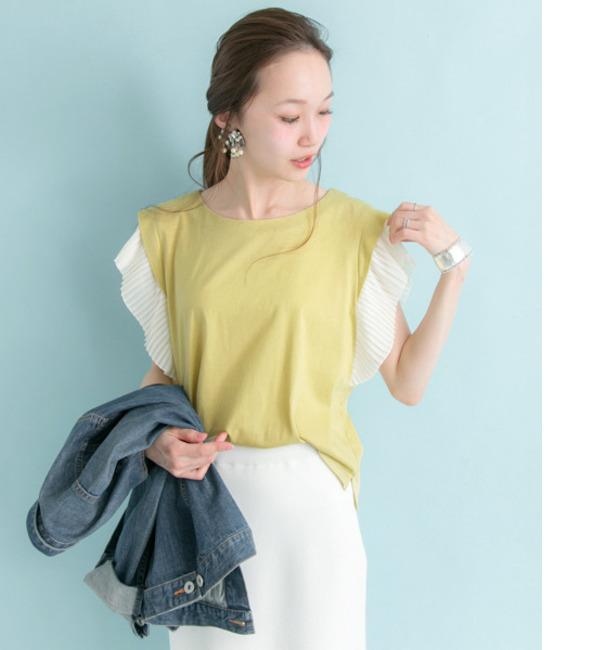 【送料無料】 カットソーにプリーツ素材をドッキングしたTシャツ。ブラウスのようなプリーツのお袖が緩やかなウェーヴを作り出し、しっかりと二の腕をカバーしながら女性らしさを演出してくれる優秀な一着。身頃部分にもなめらかなコットン素材を使用し、カットソーながらも上品な印象に仕上げています。スカートはもちろん、デニム等のカジュアルなパンツに合わせても◎ボトムスを選ばずレディライクにまとめてくれます。※この商品は、プリーツ加工をしています。加工は永久的なものではなく、繰り返し着用やクリーニングにより、プリーツが消失する恐れがありますので、ご注意ください。※ご家庭で洗濯をする際は、手洗いの上、絞らずに陰干しするようにしてください。また、ドライクリーニングも出来ます。※その他お取り扱いに関しましては、商品に付属のアテンションタグをご覧ください。 アーバンリサーチ/URBAN RESEARCH URBAN RESEARCH|トップス|Tシャツ・カットソー
