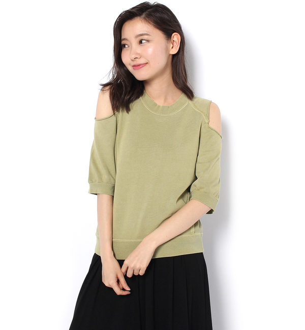 【送料無料】 程よい肌見せが女性らしいヘルシーさ抜群のオープンショルダートップスです。肩のオフカットデザインが大人っぽいこなれた雰囲気満点。パンツにもスカートにもバランス良く合わせられて一枚あれば着こなしの幅がぐっと広がります。すっきり涼しげなシルエットがこれからの季節に活躍してくれる一枚です。 チャオパニック/Ciaopanic トップス|Tシャツ・カットソー