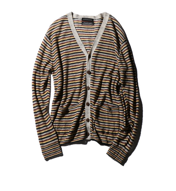 【送料無料】 近年、夏の定番となっているフレンチリネンの糸を使用したオリジナルカラーマルチボーダーのカーディガンです。前回展示会のシャツシリーズに引き続き、夏の羽織り需要にも対応のニットの登場です。薄手の素材は、清涼感があり、Tシャツの上に軽く羽織り、ショーツとコーディネイトして下さい。サーフテイスト溢れるカラーリングも大人のリゾート感を演出してくれます。ボタンはトロピカルなココナッツを使用しています。 ローズバッド/ROSEBUD ROSE BUD COUPLES|トップス|ニット・セーター,カーディガン