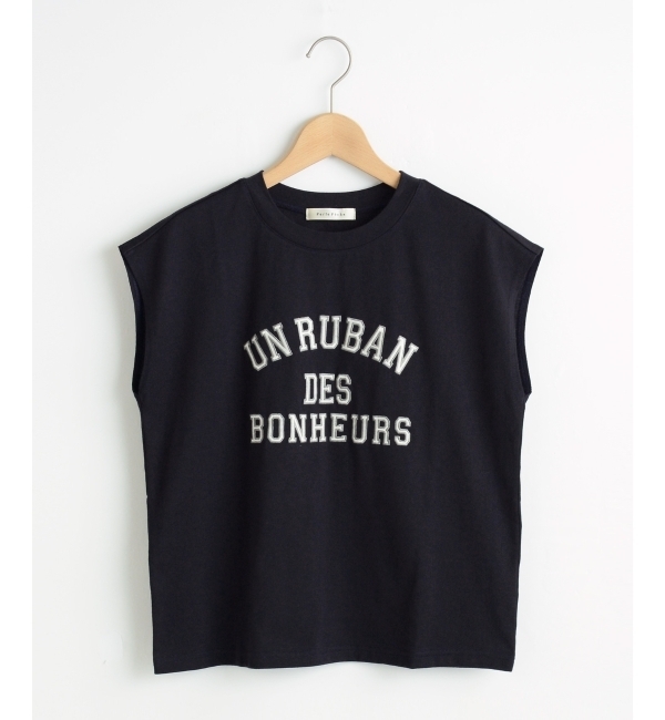 【送料無料】 英字の刺しゅうロゴがポイントの、大人カジュアルな雰囲気を演出してくれるTシャツが登場。綿100%生地の優しい肌触りが嬉しく、着心地に優れています◎フレンチスリーブ風の仕上がりで、これからの季節に重宝するアイテムです♪*プリント加工を施しておりますので取扱いにご注意下さい。[ネイビー]*摩擦や水濡れによる色落ち・色移りにご注意下さい。 ペルルペッシュ/Perle Peche トップス|Tシャツ・カットソー