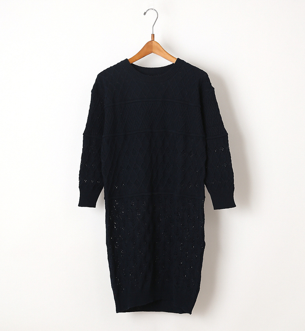 【送料無料】 【JILKY(ジルキー)Spring Collection】パターンミックスをした、変化を楽しめる編み地のニットワンピース。さらっとした肌触りのニットなので、春らしい雰囲気で着られます。model:H166・B82・W58・H82 着用サイズ:FREE ルージュ・ヴィフ ラクレ/Rouge vif la cle ワンピース|ワンピース