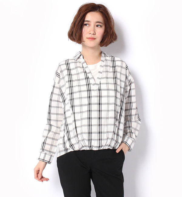 【送料無料】 プルオーバータイプのチェック柄シャツブラウスです。さっとかぶるだけで簡単に着られて便利。きれいなシルエットで大人っぽく着こなせるアイテムです。バック丈が長めで、ヒップが隠れる長さ。全体にゆとりのあるシルエットで着心地が良く、体型カバー効果も満点です。細身のパンツとの相性が抜群です。 コラージュ ガリャルダガランテ/COLLAGE GALLARDAGALANTE トップス|Tシャツ・カットソー,シャツ・ブラウス,その他