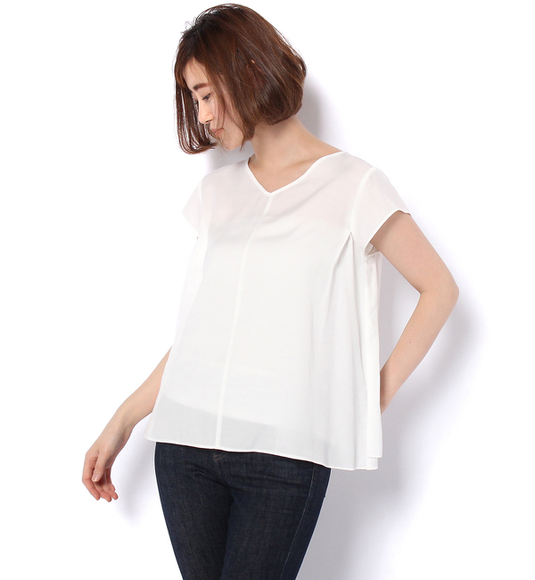 【送料無料】 肩にかぶせたカップスリーブがキュートなプルオーバーブラウス。ソフトなVネックで優しげな女性らしさも演出しました。後ろ身頃はシルエットに動きがでるよう、スリットデザインの生地をもう1枚重ねています。爽やかな好印象スタイルを約束する明るいカラーリングも魅力。 アンディコール/un dix cors トップス|シャツ・ブラウス