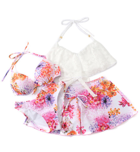【サンアイミズギラクエン/三愛水着楽園】 ボタニカル柄スイムウェア4点セット [送料無料]