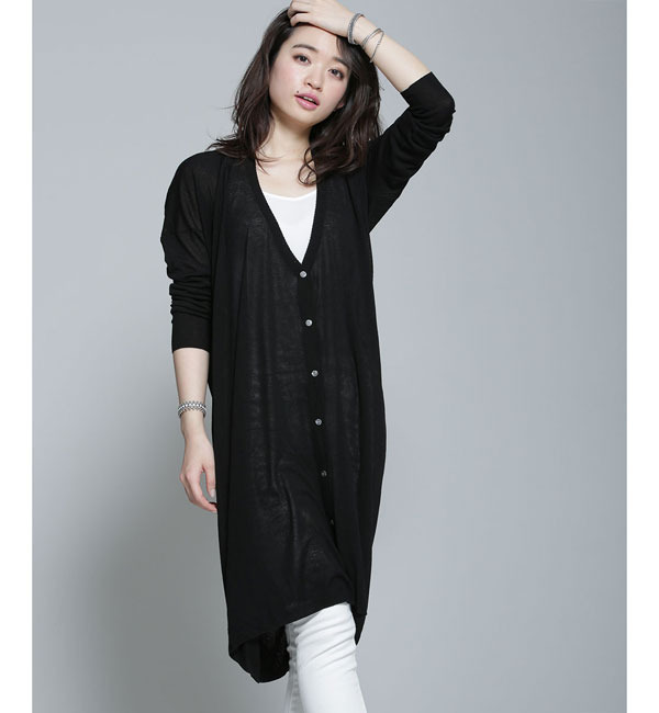 【送料無料】 ■今から夏まで使えるロングカーディガン■トレンドのロング丈と軽やかな素材感が魅力のカーディガンは、強撚のレーヨン糸を使用しさらっとした肌触りに仕上げました。春から夏にかけての羽織りとして最適な素材感のハイゲージニットで、ノースリーブのオールインワンやワンピース、トップスなどにプラスするのがおすすめ。レーヨン素材のほどよい落ち感で、コンサバにいきすぎず適度な抜け感が生まれます。 バックスタイルにもこだわり全体を後ろに抜けるようなデザインで仕上げることによって、バックスタイルにほどよいドレープが出るシルエットに。バックスタイルに立体感が生まれ、こなれた印象を演出してくれます。シンプルな中にもこだわりの詰まったデザイン性が魅力のアイテム。ノースリーブアイテムにプラスして暖かくなってきてノースリーブのアイテムも増える季節。そんな時に気になる肌の露出も、しっかりコントロールしてくれる優れものです。夏でも着用OKな軽い素材を使用しているため、日焼け防止や冷房対策などにも活躍してくれること間違いなし!オンオフ問わず、1枚あると重宝する便利なアイテムです。※こちらの商品は水や雨に濡れたり、汗による湿気、乾燥状態での摩擦により、薄い色の衣服などに色移りする可能性がございます。予めご了承いただき、ご使用の際にはご注意くださいますようお願い致します。model: H168cm 着用サイズ:FREE ナノ・ユニバース/nano・universe EX ROBE|トップス|カーディガン