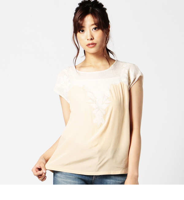 【ローズバッド/ROSEBUD】 (SEE U SOON)6113029 メッシュ切り替えフレンチスリーブプルオーバー [送料無料]