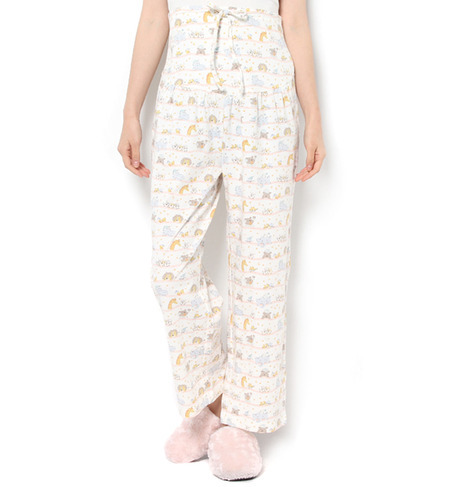 【送料無料】 ゆったりとしたシルエットで、ラフに穿きこなせるロングパンツ。ドリーミーなスリーピーアニマル柄が、愛らしい印象を与えます。リラックスなアクセントを添えるリボンコードも魅力のひとつ。 ジェラート ピケ/gelato pique gelato pique|ルームウェア・インナー|ルームウェア