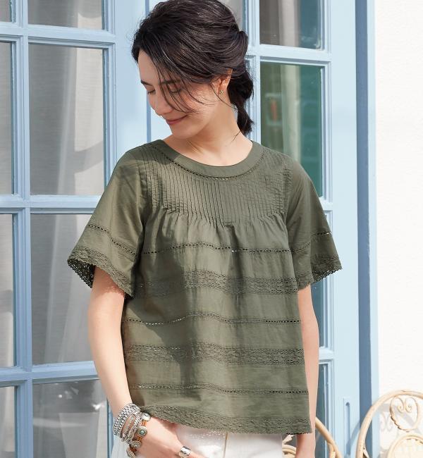 【グリーンレーベルリラクシング/green label relaxing】 CB C ピンタック LACE SSL ブラウス [送料無料]