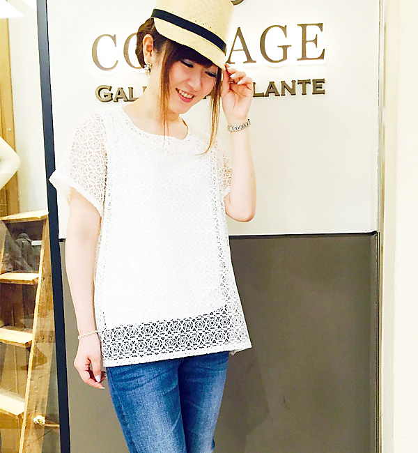 【送料無料】 フランス発のブランド「スージーウィンクル」の女性らしいヘルシーさを演出してくれる総レースTシャツです。大胆な透け感のあるレースが涼しげでさらっと着るだけでシンプルなスタイリングに華やかさをプラスしてくれる一枚です。スカートと合わせてフェミニンに、デニムと合わせて甘辛にも幅広くコ?デを楽しめます。 コラージュ ガリャルダガランテ/COLLAGE GALLARDAGALANTE トップス|Tシャツ・カットソー,シャツ・ブラウス,その他