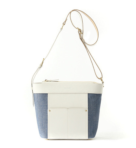 スプリットレザー・デニム風生地コンビショルダーバッグ
