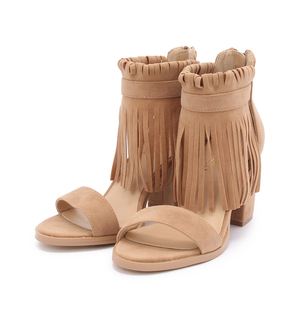 【ディスコートパリシアン/Discoat Parisien】 フリンジ太ヒールサンダル [送料無料]