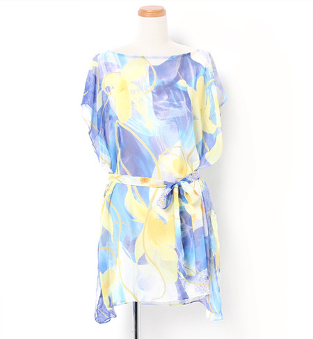 【サンアイミズギラクエン/三愛水着楽園】 【INLET】 Big Flower リボンベルト付きプリントデザインチュニックワンピース [送料無料]