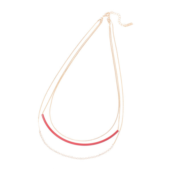 【送料無料】 シンプルなゴールドチェーン、華奢なビジュー、ゆるやかなカーブを描くカラーバー、デザイン性の違うスリーラインを組み合わせたネックレスです。女性らしさやカジュアルな印象をミックスした遊び心あふれる仕上がり。店舗へのお問い合わせ商品番号:187-08020韓国製 クード シャンス/COUP DE CHANCE COUP DE CHANCE|アクセサリー ・ヘアアクセサリー|ネックレス
