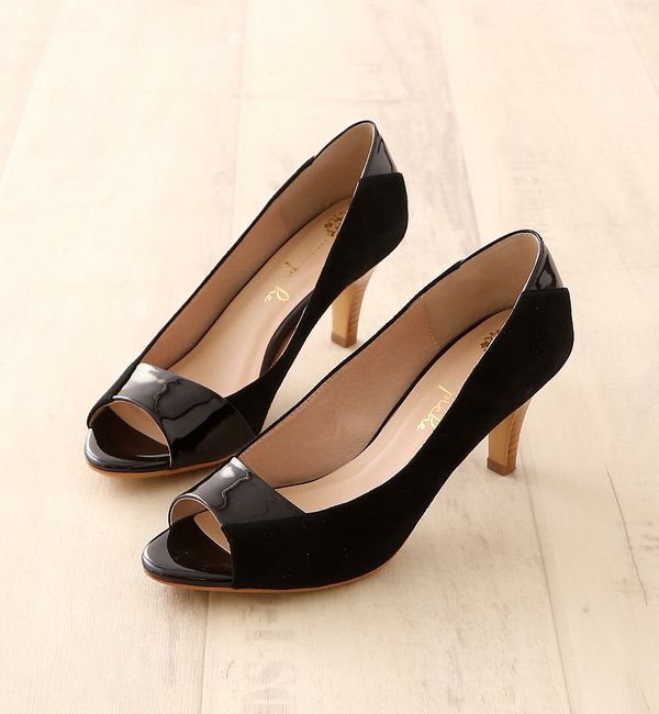 【送料無料】 通勤にオススメしたいオープントゥパンプス。ミニマムな辛口デザインが大人っぽくシャープに見え、オンでもオフでも活躍させたい一足。滑り止め加工をした中敷きで、足が前にずれるのを緩和。 ピシェ アバハウス/Piche Abahouse シューズ|パンプス