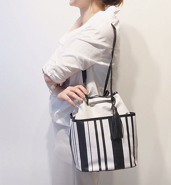 【送料無料】 ランダムなストライプ柄が大人カジュアルのアクセントにぴったりの、ストライプ2WAYトートバッグです。ハンドルをアレンジすることで、ハンドバッグとショルダーバッグの二通りでお使いいただくことが出来る一品。縦に長めの巾着シルエットでお荷物をスマートに持ち運ぶことが出来ます。 ガリャルダガランテ/GALLARDAGALANTE バッグ|トートバッグ
