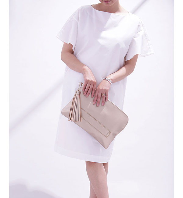 【送料無料】 ■アーバンシックなシンプルクラッチ■存在感のあるフリンジがあしらわれた大人クラッチ。大きすぎもせず小さすぎないサイズ感が魅力です。バッグ片面には手を通せる工夫が施されており、バッグ本体をしっかりと持て、するりと手からバッグが落ちてしまうという事も防げます。ゴールドのスタッズ使いも上品でおしゃれ。タウンユースからフォーマルシーンまで幅広く活躍してくれます。魅力たっぷりの新作バッグに注目!定番色のブラック&ホワイトに加え、シーズンを盛り上げる明るめカラーを揃えました。シャイニーな色味が今年らしいゴールドとシルバー、柔らかな女性らしい印象のグレイッシュベージュ、ピンクベージュ、ブルーグレーの全7色ご用意。合成皮革なのでちょっとした雨の日でも使えるのが嬉しいですね。歩くたびに揺れるフリンジがヌケ感を演出してくれます。 ナノ・ユニバース/nano・universe nano・universe Ladys|バッグ|クラッチバッグ