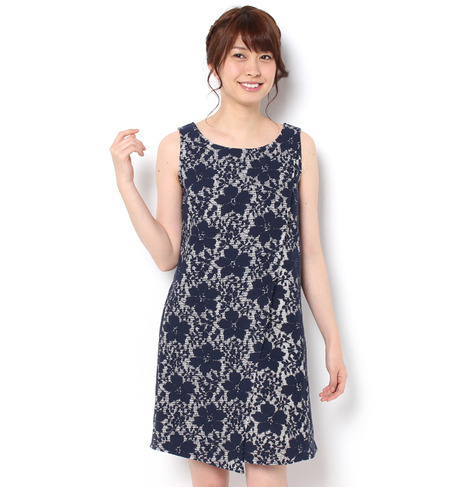 【送料無料】 レースボンディングを使用したエレガントなノースリーブワンピースです。こだわったのは、ボディラインを拾い過ぎない上品なシルエットに動きが加わる斜めカットのフロントラップ。1枚でも着こなしやすいネックラインやアームホールの開き具合もうれしいポイントです。 マーキュリーデュオ/MERCURYDUO ワンピース|ワンピース
