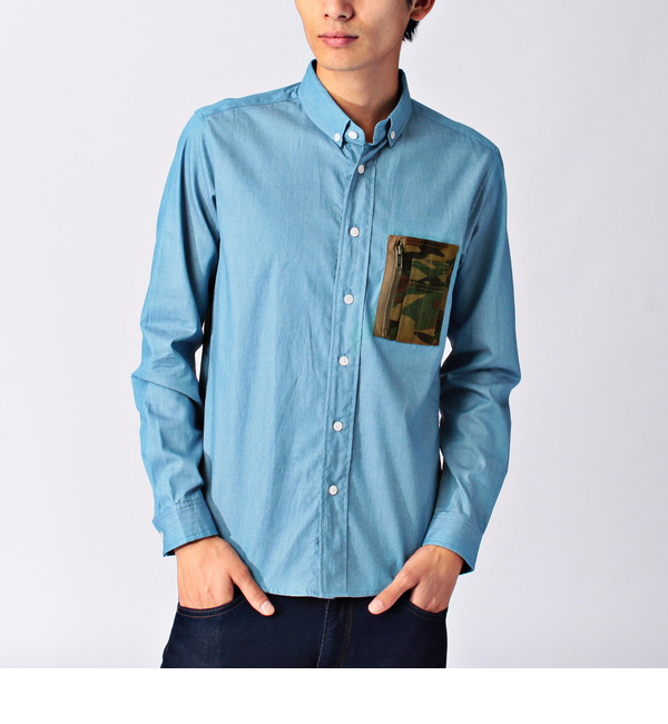 【送料無料】 迷彩柄のMA-1ポケットが特徴的なデニム素材のボタンダウンシャツです。部分使いされた迷彩柄のポケットが特徴的なデザインのシャツです。 モデル情報:身長180cm B87W71H83 着用サイズ:02(M)店舗へのお問い合わせ商品番号:223-87006秋冬を通じて着用いただける商品です。中国製 ベース ステーション/BASE STATION BASESTATION|トップス|シャツ・ブラウス