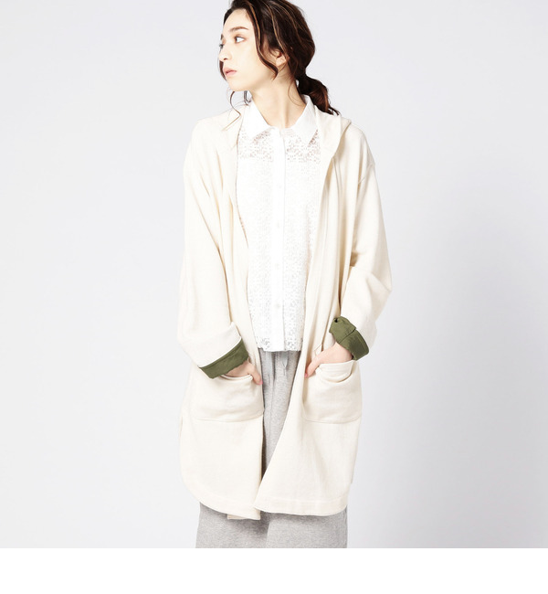 【送料無料】 季節の変わり目に嬉しいライトなアウター。繊細な編み柄で仕立てたカットソーで肌触りがよく、フード付きでカジュアルな雰囲気に。袖を折り返せば裏地が見えてポイントになります。お尻が隠れる丈で暖かく体型カバーにも。 ローズバッド/ROSEBUD ROSE BUD COUPLES|トップス|カーディガン
