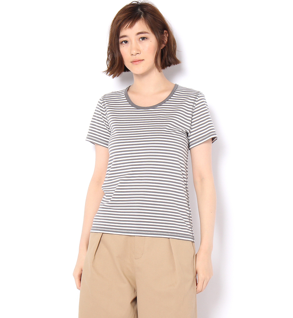 【3000円(税込)以上で送料無料】 肌触りの良い天竺素材が心地良い天竺細ボーダーS/ST-SHです。ボディーラインに程良くフィットするきれいなシルエットに細見せ効果あり。シンプルデザインでボトムスを選ばず、一枚で着るのはもちろん、ジャケットにインしても爽やかにキマります。サイドと袖周りのステッチがデザインのアクセントです。 チャオパニック/Ciaopanic トップス|Tシャツ・カットソー