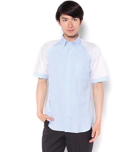 【送料無料】 「Cricket」クリケット オリジナル ギンガムチェックオックスフォード×無地鹿の子 のパッチワーク 半袖ボタンダウンシャツ。前身頃を布帛素材のギンガムチェックを使用し、後身頃には伸縮性の高い同系色かっとそー生地である無地の鹿の子を使用し、袖もスポーティーにラグランスリーブを取り入れ、パッチワークテクニックをデザインとし、素材の特徴を生かした仕立てのカジュアルシャツとなっております。シャツとカットソーのそれぞれの良いところを取り入れたちょっとキッチリ目のカジュアルシャツです。 パブス/PUBS トップス|シャツ・ブラウス