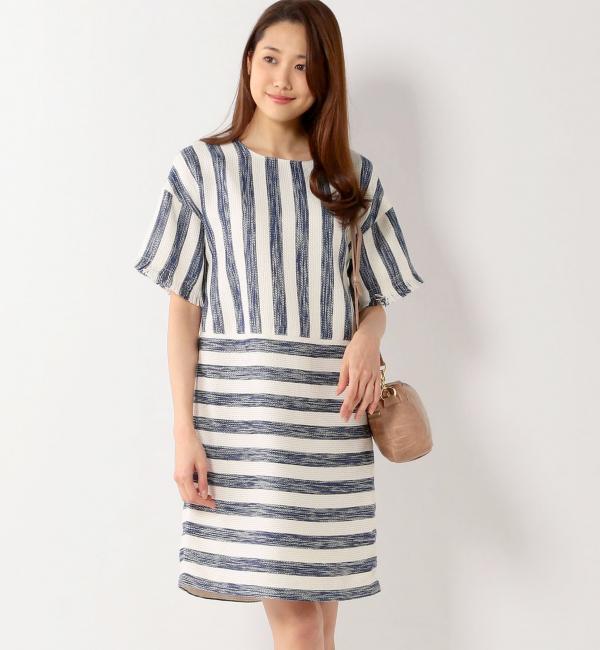 【送料無料】 春夏らしいストライプ×ボーダーの組み合わせが、目を惹くサックワンピース。オフショルダーの袖にフリンジディテールを加え、表面感のある素材が魅力です。すっきりとしたサック感で体型カバーもうれしいポイント。シンプルなストールなどと合わせて、さわやかなスタイリングをおすすめします。<closet story>フレンチシックとブリットモダンがテーマのオリジナル企画レーベル。若々しさと可愛らしさをもったエレガントなスタイルをベースに、都会的で今日を生きる女性が「自分らしさ」を大切にしたいときに揃えたいアイテムを提案します。店舗にお問い合わせの際は、全国のステーションストア各店まで下記の品番をお申し付け下さい。品番:6926-699-0247 ザ ステーションストア ユナイテッドアローズ/THE STATION STORE UNITED ARROWS LTD. THE STATION STORE UNITED ARROWS LTD|ワンピース|ワンピース