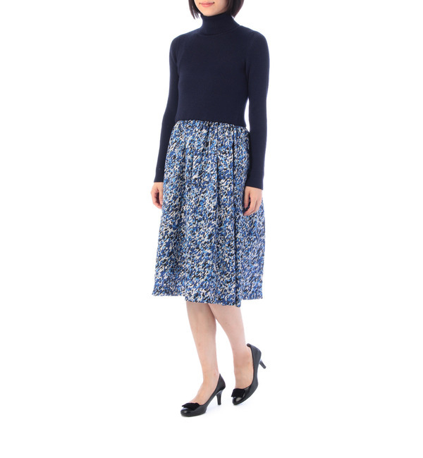 【送料無料】 タートルネックニットとアーティスティックなプリントを施したミモレ丈スカートをコーディネートしたような、ドッキングデザインのワンピース。ウエストを高めに設定しているのでスタイルアップ効果も◎。流れるようなギャザーが優雅な雰囲気を漂わせます。モデル情報:身長168cm B78W60H86 着用サイズ:09店舗へのお問い合わせ商品番号:732-57993主に秋に着用いただける商品です。日本製 スープ/SOUP SOUP|ワンピース|ワンピース
