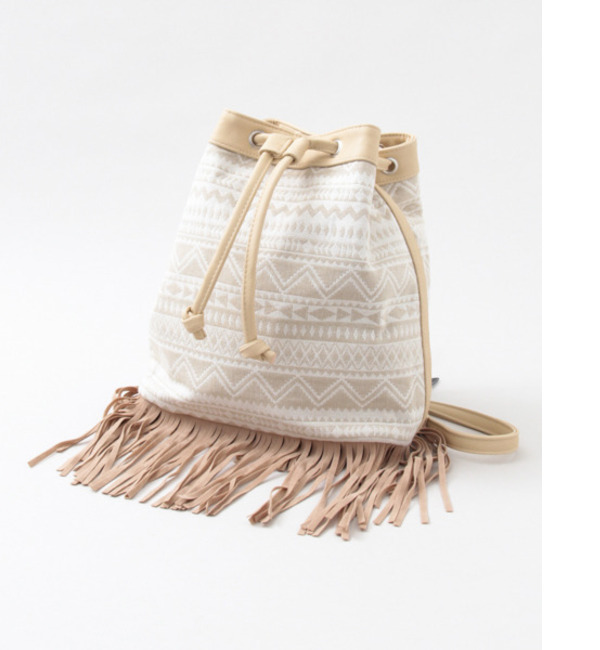 【送料無料】 ジャガード柄の生地にフリンジを合わせたノスタルジックなルックスが今シーズンらしい印象の2WAYバッグが登場。付属のストラップを再度の取り付けたショルダータイプでお使いいただけ、さらにストラップを伸ばしてバック部分の金具とレザーの輪に取り付けるとリュックとしてもお使いいただけますよ。その日の気分やスタイリングに合わせて持ち方を替えてみて◎※本製品は摩擦や雨、汗などの濡れた状態のままでご使用されますと色落ちや色移りの原因となる事がございます。白い物や淡色の物との併せてのご使用はお避け下さい。※その他お取り扱いに関しましては、商品に付属の下げ札をご確認の上、充分ご注意ください。重量:約400g センスオブプレイス バイ アーバンリサーチ/SENSE OF PLACE by URBAN RESEARCH SENSE OF PLACE by URBAN RESEARCH|バッグ|リュック
