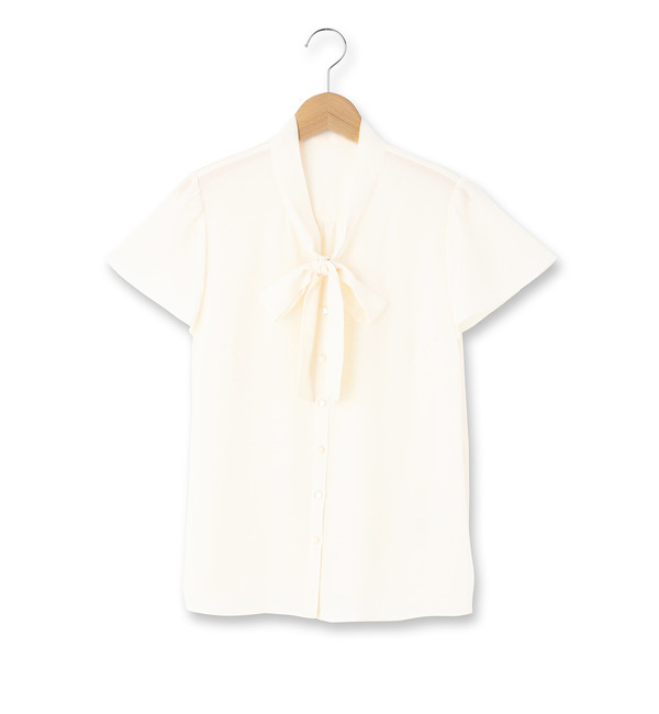 【送料無料】 半袖デザインですっきりと着こなせるシャツ。胸元のボウタイデザインがフェミニンな女性らしさを印象づけます。とろみのあるジョーゼット素材が上品かつやわらかなシルエットに。オン・オフ兼用で使える一枚です。モデル情報:身長166cm B83 W58 H85 着用サイズ:09(M)店舗へのお問い合わせ商品番号:732-88512主に夏に着用いただける商品です。中国製 スープ/SOUP SOUP|トップス|シャツ・ブラウス