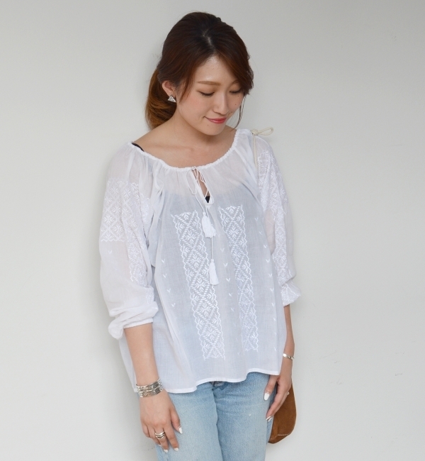 liflattie ships:エンブロイダリー ソリッドブラウス