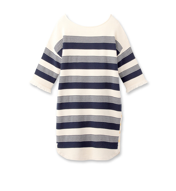 【送料無料】 OPAQUE/MARILYN MOON(マリリンムーン)ワンピースポコポコとした表情が楽しいコットンニットのワンピース。ピッチを切り替えたパターンボーダーや、サイドボタンが、洗練された大人マリンを約束します。直線的なシルエットをベースに、サイドカットや、切りっぱなし風の毛羽感が、こなれたヌケを演出。ブラウジングで表情を変えながら気軽にまといたいアイテムです。※バイイング商品のため下げ札サイズ表記とワールドサイズ表記が異なります。製品寸法をご確認くださいませ。モデル情報:身長172cm B80 W60 H88着用サイズ:38店舗へのお問い合わせ商品番号:301-58988春夏を通じて着用いただける商品です。中国製 オペーク/OPAQUE OPAQUE|ワンピース|ワンピース