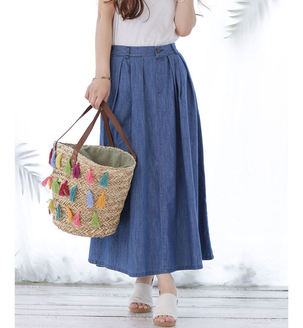 【送料無料】 ■ウエストに入ったタックでリラックスした雰囲気に■ウエスト周りにタックを入れてゆったりとしたシルエットに仕立てた新作スカート。デニムのマテリアルでカジュアルでナチュラルなテイストに。くるぶしが見えるくらいの絶妙な丈感なので、サンダルを合わせて足を見せることで抜け感を出すスタイリングがオススメです。着こなしに取り入れやすいカジュアルなアイテムなので、この春夏に大活躍が期待できそう。キレイめにも、カジュアルにもワイドなフォルムが特徴的なデニムスカートもトップスの合わせ方で印象が変わる。シンプルにTシャツなどを合わせれば、肩ひじ張らないリラックススタイルに。オフショルダートップスなどを合わせれば、トレンドライクな着こなしに。model: H162cm 着用サイズ:36※こちらの商品は水や雨に濡れたり、汗による湿気、乾燥状態での摩擦により、薄い色の衣服などに色移りする可能性がございます。予めご了承いただき、ご使用の際にはご注意くださいますようお願い致します。 ナノ・ユニバース/nano・universe nano・universe The 1st Floor Ladys|スカート|スカート,フレア
