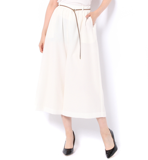 【送料無料】 スカート見えするフェミニンなシルエットが魅力のスカウチョ。タンブラー加工を施したふんわりとした柔らかな風合いなので、カジュアルにもきれいめにも対応します。トップスインがおしゃれに決まる軽やかに揺れる細ベルト付き。バックウエストにゴムを備え、はき心地のよさにも気を配りました。 アンディコール/un dix cors パンツ|チノ
