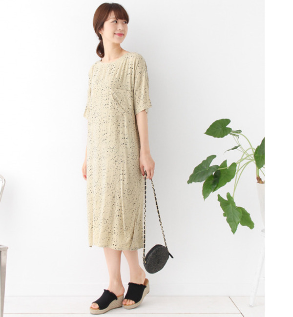 【送料無料】 風合いのあるレーヨン素材を使用したプリントワンピースは、インクを飛ばしたようなランダムドットがスタイリングのアクセントに。涼しげに一枚で着るのはもちろん、ボトムス合わせもオススメです。※この製品は、ハンドプリント生地を使用しています。プリントの特性上、一点一点多少の個体差やスレ、シミのような色ムラなどがありますが、製品の特徴として独特の風合いをお楽しみください。 アーバンリサーチ/URBAN RESEARCH URBAN RESEARCH DOORS|ワンピース|ワンピース
